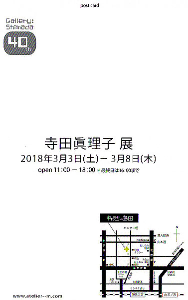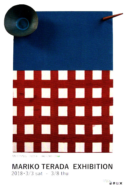 その漠然とした気分に輪郭を与えるのが、一本の金属線であり錆びた釘なのだ。分量や組み合わせが成功し作品として昇華する事もある。色で構成した世界に、最小限の異質な要素をさりげなく置くと、まるで必然があるように思えてしまうのが不思議である。 寺田眞理子